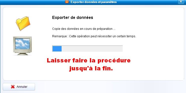 La procédure commence, elle peut prendre un certain temps patientez jusqu'à ce qu'elle soit terminée.